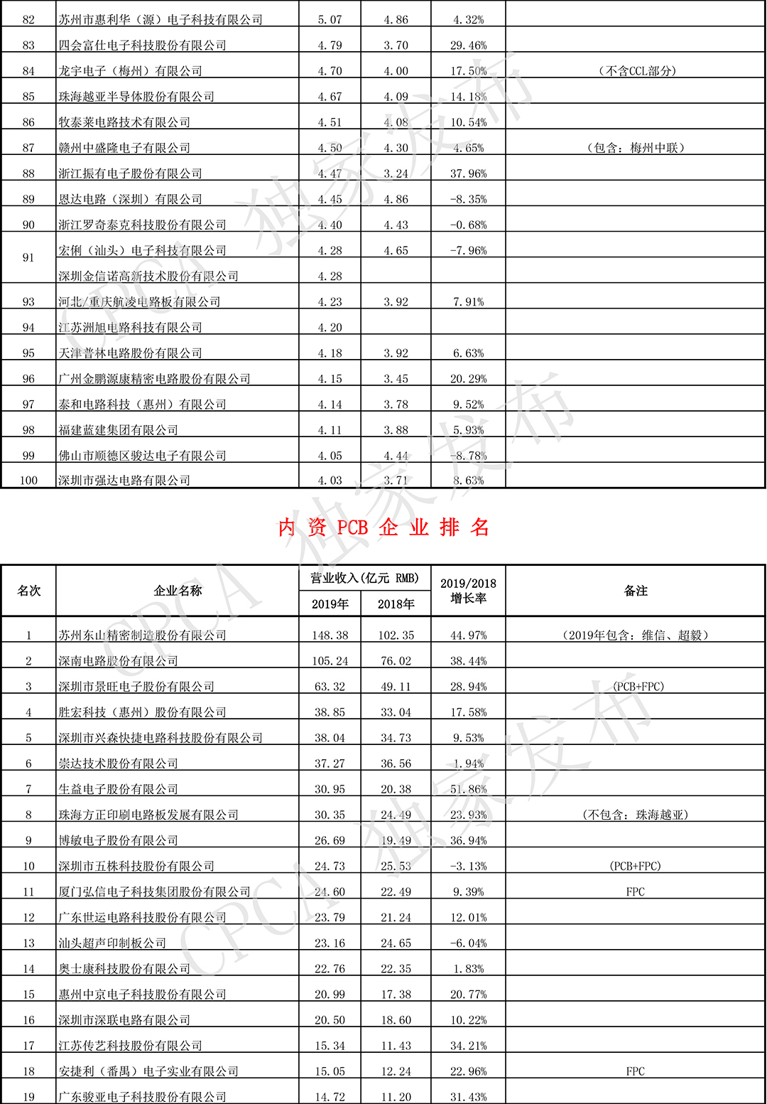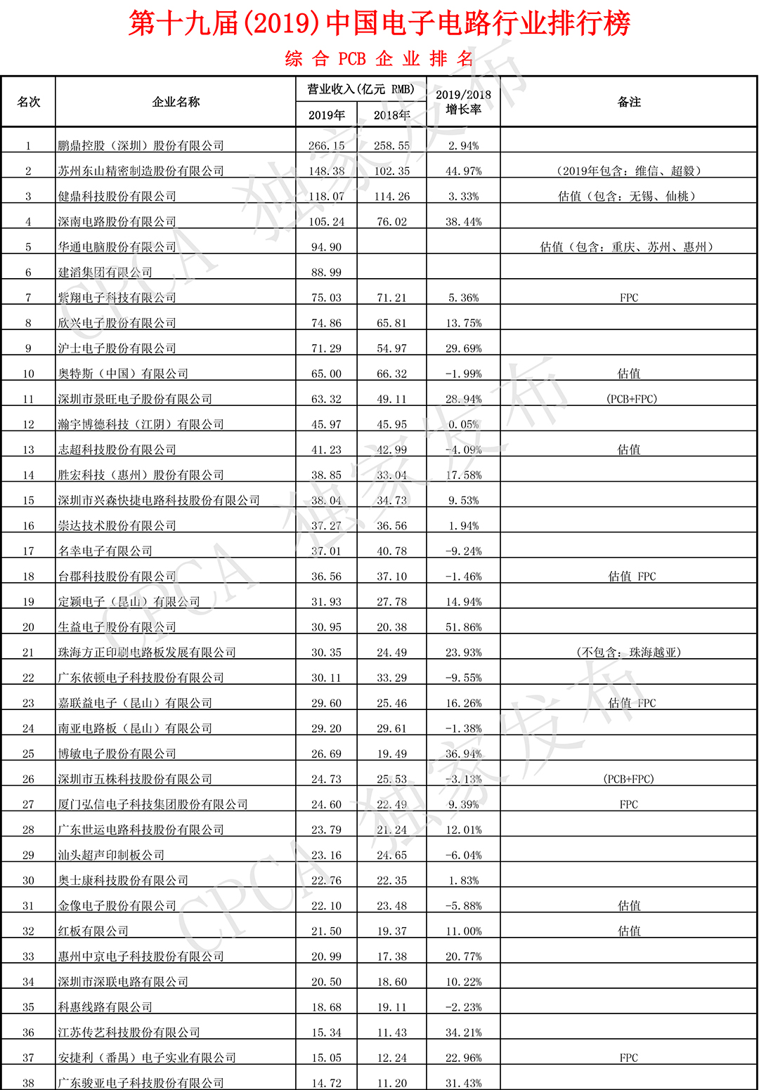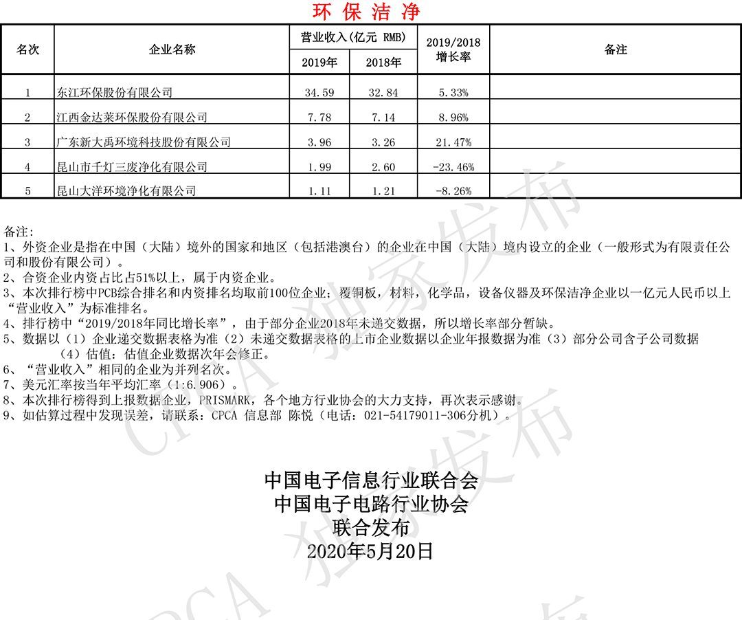 第十九届(2019)中国电子电路行业排行榜