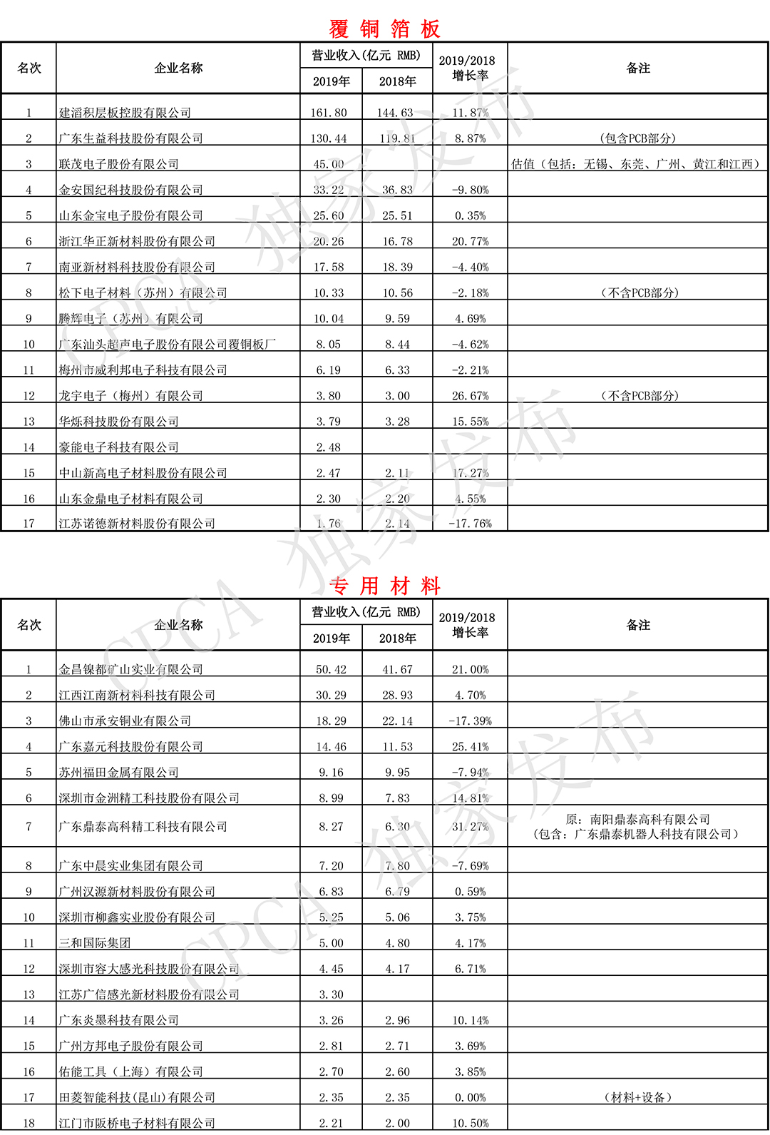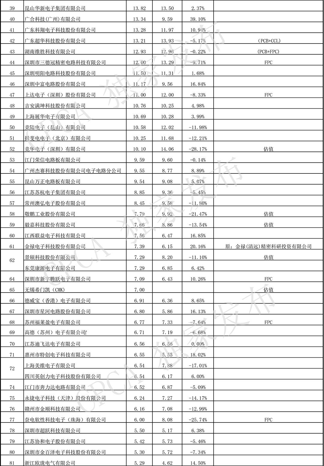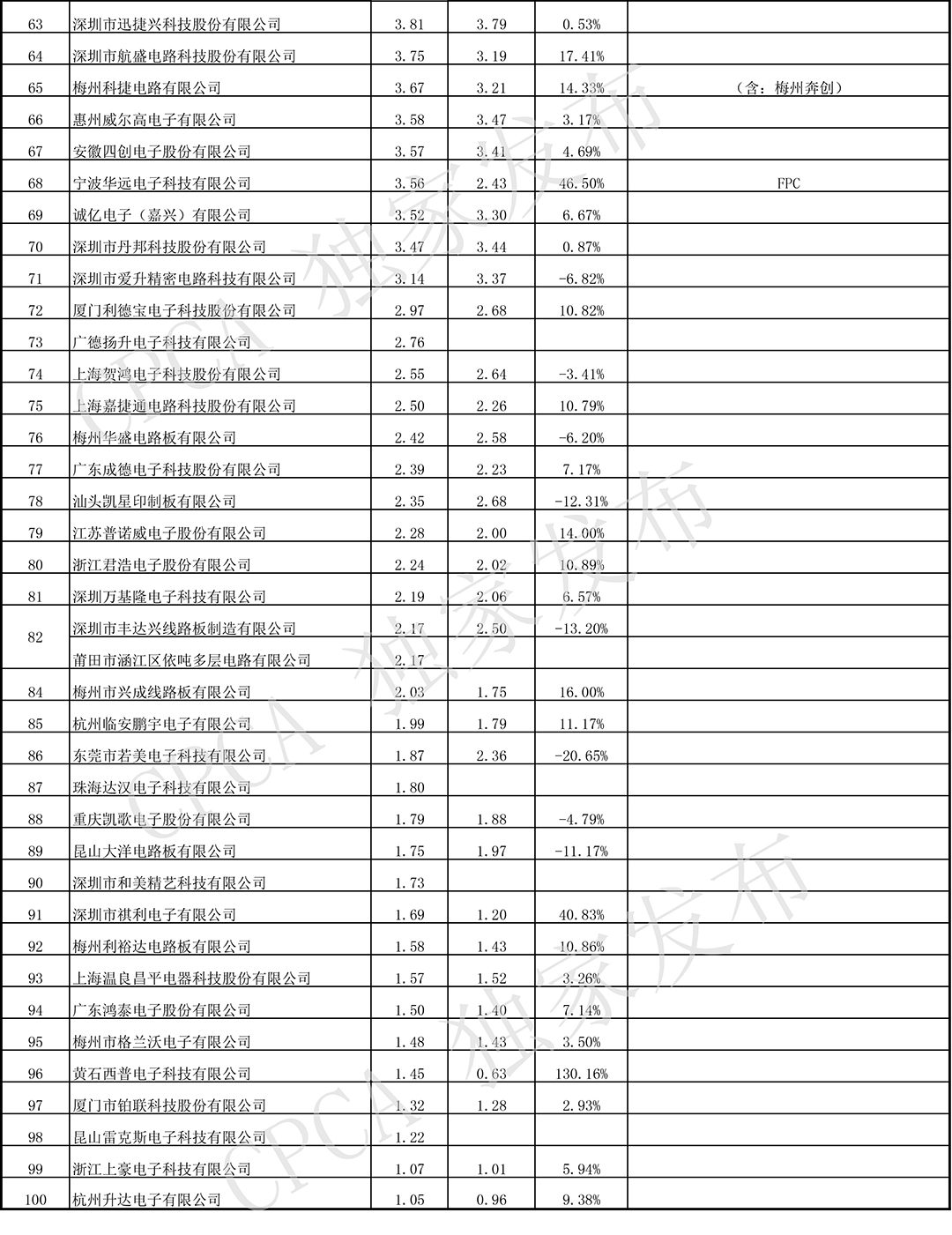 第十九届(2019)中国电子电路行业排行榜
