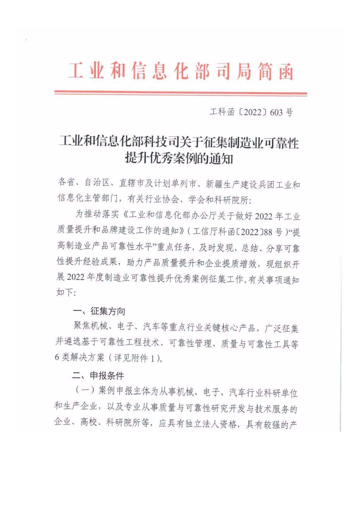 关于转发《工业和信息化部科技司关于征集制造业可靠性提升优秀案例的通知》的通知